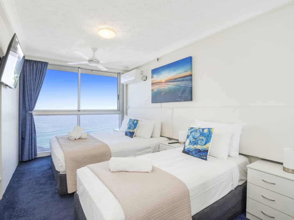 * Second bedroom accommodates guests on Queen bed and Single Bed (second single mattress available on request).