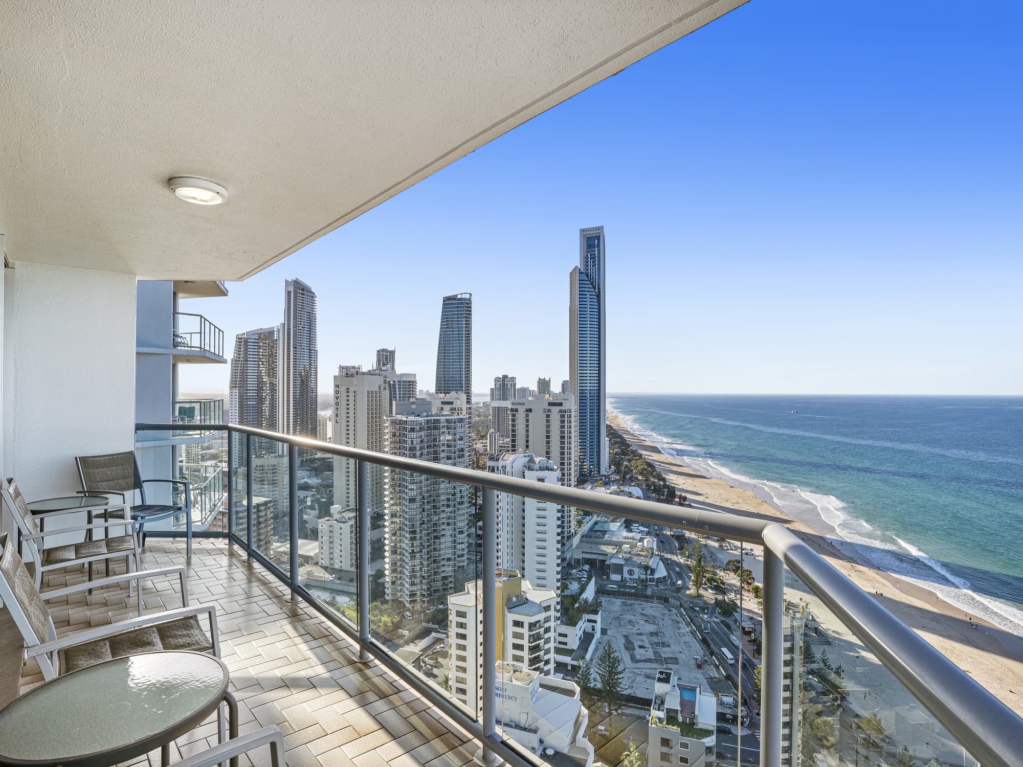 This is a luxury 2 bed, 2 bath apartment, on level 34 of the Peninsula at Surfers Paradise, with amazing views of the beaches and coastline. It is directly across from the patrolled beach, and only 2 blocks from the famous Cavill Avenue / Mall with fabulous food, entertainment and shopping.