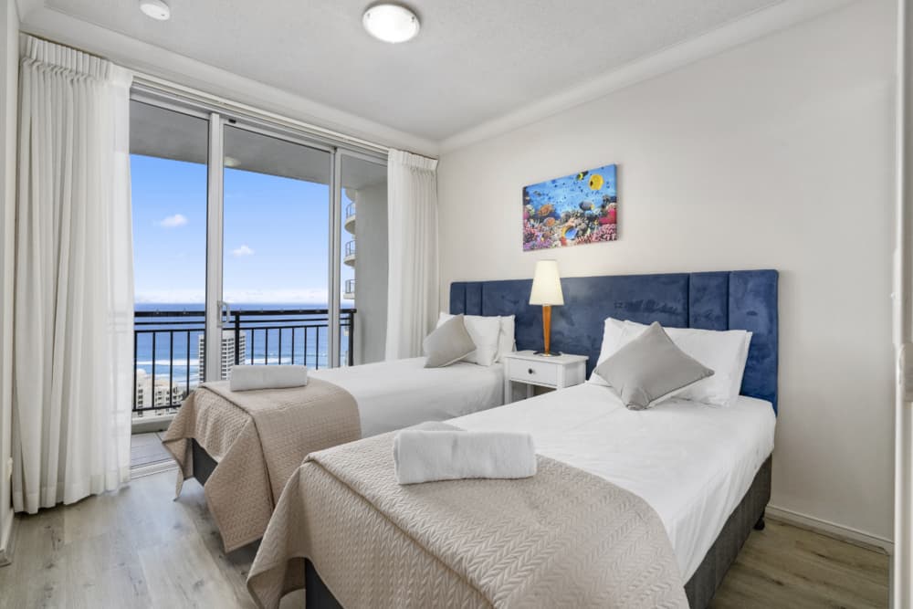 Touch the sky from this level 26 Ocean View 2 bedroom apartment in the Chevron Renaissance. The apartment is in excellent condition and is ready to host your next family holiday or business trip to the Gold Coast. Don’t take a chance booking with the onsite manager, not knowing which room you will get. Secure this exact apartment and enjoy the view everyone wish’s they had for their trip! The apartment comes with FREE fast WIFI.